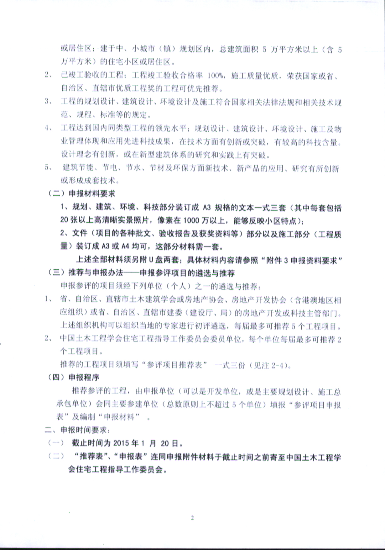 关于推荐和申报“2015中国土木工程詹天佑奖(住宅小区)”参评工程的通知